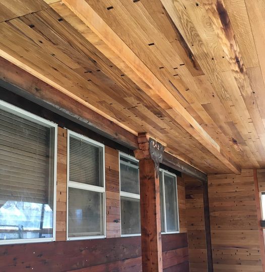 Our Sutter Homes tongue and groove is made of engineered wood backing with ⅛” Oak veneers from the wine tanks’ staves, with some of the Oak still stained from the wine. Horizontal dowel holes, wine staining, knots, and drilled-out knots filled with dowels are present. Due to dowel holes, this product is better suited as paneling but can be used as flooring and siding.